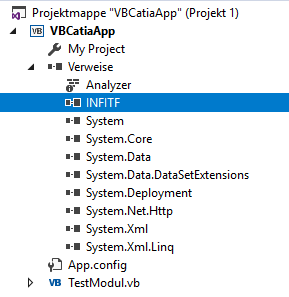 Um die V5Automation API in einem VB.NET Projekt ansprechen zu können müssen zuerst die entsprechenden COM Schnittstellen im Projekt referenziert werden.