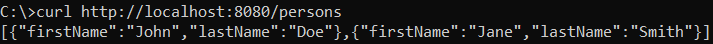 Die Applikation hat nur einen Endpoint (/persons) welche eine Liste von Personen als JSON zurückliefert. Dementsprechend kannst du die API über folgendes curl-Command testen: