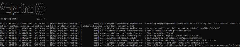 Zum Bauen der Applikation mit Maven (Maven Download Seite), müssen wir in den Ordner „blog-spring-boot-rest-api“ wechseln und das build command ausführen: